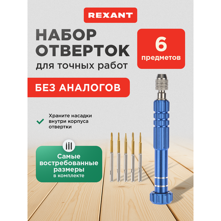 Набор отверток REXANT 6 в 1 оптимален для выполнения прецизионных работ в электронике и электромеханике, ремонта большинства видов и моделей популярной портативной техники: смартфонов, часов, планшетных ПК, игровых приставок, фотокамер, электронных сигарет. Комплект пригодится для ремонта техники Apple.
