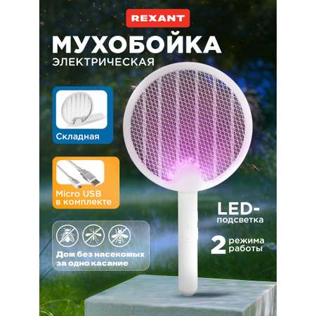 Электрическая складная мухобойка REXANT похожа на ракетку для тенниса. Уникальная особенность устройства – поворотный корпус!