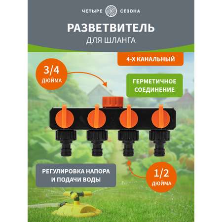 Цена на Разветвитель для шланга на 4 канала 1/2"-3/4" - 1219 ₽.