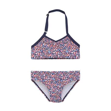 Раздельный купальник со сплошным рисунком в мелкий цветочек поможет юной моднице стать звездой пляжа или аквапарка — образ получится стильным и удобным для его обладательницы. V-образный вырез элегантно смотрится при носке, а лямка на шее добавляет образу контрастный акцент. Для комфорта ребенка ее можно отрегулировать по размеру, чтобы изделие не сползало и не задиралось. Слегка завышенная талия плавок также обеспечит идеальную посадку. Можно отдыхать на пляже, строить песочные замки или прыгать в воду «бомбочкой» и не переживать, что купальник слетит. В составе — 80% полиамида и 20% эластана. Материал мягкий и приятный к телу, поэтому у ребенка не будет раздражений на коже. Купальник отлично тянется, при этом не мнется и не деформируется во время стирки, а еще быстро сохнет. Идеальный вариант для детей, которые обожают проводить время в воде, а после купания мерзнут.