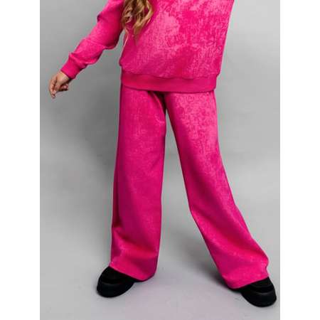 Стильные прямые брюки фуксия из футера для девочки на резинке с идеальной посадкой от российского производителя трикотажа для всей семьи бренда Seltex.