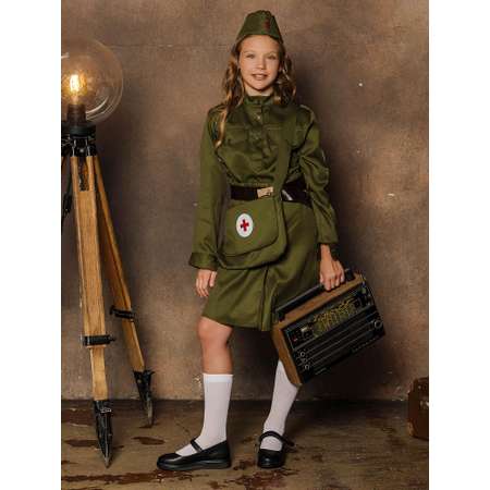 Костюм военной медсестры для девочки. Детская военная форма подойдёт для поздравления ветеранов на 9 мая, устроить представление для папы или дедушки на 23 февраля, поучаствовать в спектакле на военную тему. Военная одежда для участия в реконструкции.