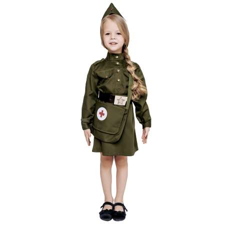 Костюм Военная Медсестра для девочек к праздникам 9 мая и 23 февраля представлен в широком ассортименте размеров от 4-х до 12 лет.