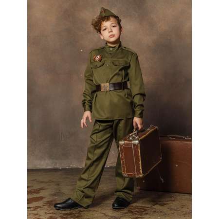 Этот образ является точной копией формы солдата Красной Армии. Широкий диапазон размеров делает костюм подходящим для мальчика практически любого возраста.