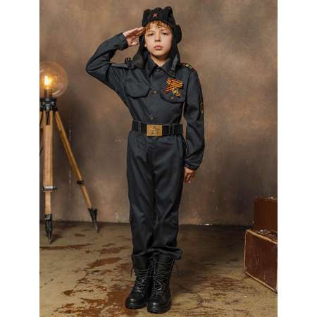 Костюм Военного Танкиста для смелого мальчика, который хочет по-настоящему прикоснуться к истории своего страны. Реалистичный образ относит нас к временам ВОВ, позволяет окунуться в те события, вспомнить наших героев и просто сказать им спасибо. Костюм Военный Танкист в черной расцветке состоит из куртки, брюк, ремня, шлемофона и ордена.