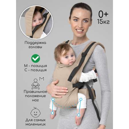 Два положения ношения: Лицом к маме (для ощущения безопасности и близости) и на спине, когда ребенок уже подрос.
