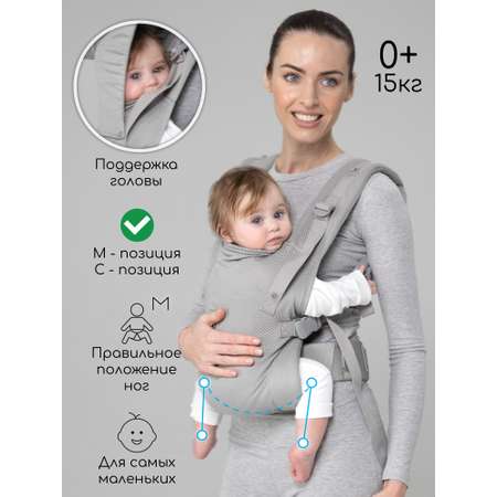 Два положения ношения: Лицом к маме (для ощущения безопасности и близости) и на спине, когда ребенок уже подрос.