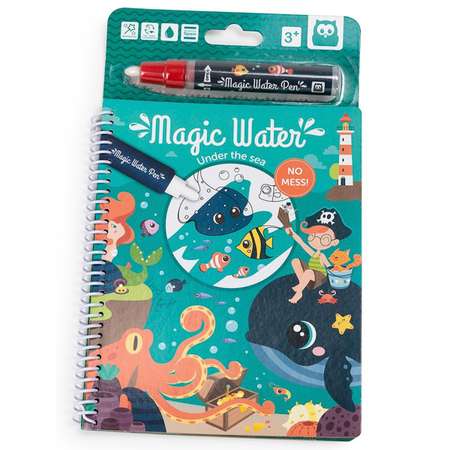 Водная раскраска "Волшебные картинки" Подводный мир: раскрашивание осуществляется при помощи специального маркера, впитывающего воду, который активирует невидимую краску на листах, проявляя спрятанные узоры и рисунки.