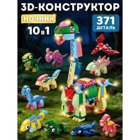 Конструктор ночник Динозавр 10 в 1 - это гармония увлекательного творчества и уютного света.