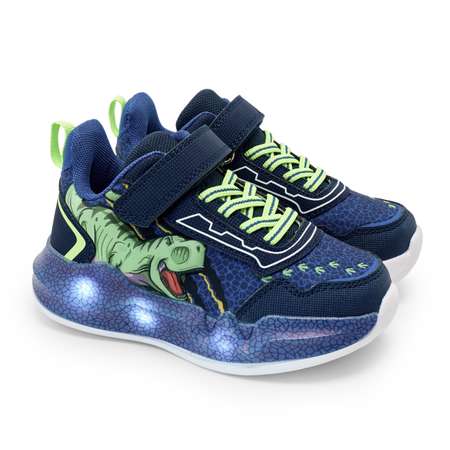Особое внимание привлекает ультралёгкая белая подошва из ЭВА со встроенными светодиодами — она почти невесомая, отлично амортизирует и светится при каждом шаге. Подсветка делает кроссовки эффектными и улучшает видимость в тёмное время суток, повышая безопасность ребёнка.