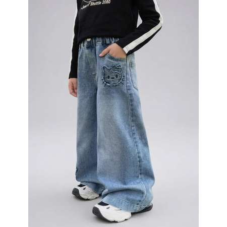 Джинсы широкие для девочки iUkoworld – это стильное и комфортное решение для юных модниц. Модель выполнена в популярном фасоне палаццо с широкими штанинами, которые обеспечивают свободу движений и комфорт в течение всего дня. Высокая посадка весенних джинсов для девочек подчеркивает талию, а пояс на резинке гарантирует удобную и надежную фиксацию. Расклешенные джинсы палаццо выполнены из высококачественной хлопковой ткани, не теряют свой цвет и форму даже после многочисленных стирок. Модель клеш от бедра имеет прекрасную посадку и подчеркивают достоинства фигуры маленьких модниц, никогда не выходит из моды. Джинсы детские летние клеш от бедра изготовлены из качественного материала, состоящего из 88% хлопка, 10% полиэстера и 2% спандекса, что обеспечивает мягкость, прочность и эластичность. Модель декорирована милым принтом Hello Kitty с бахромой, добавляя игривости и индивидуальности образу. Джинсы стильные детские отлично подойдут для повседневной носки, посещения детского сада или праздничных мероприятий. Благодаря универсальному синему цвету и стильному дизайну, они легко сочетаются с различными верхами и обувью, создавая множество модных образов. Вашему ребенку будет удобно и комфортно в этих джинсах в любое время года.