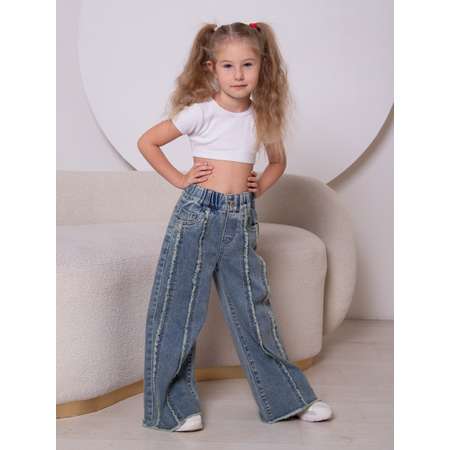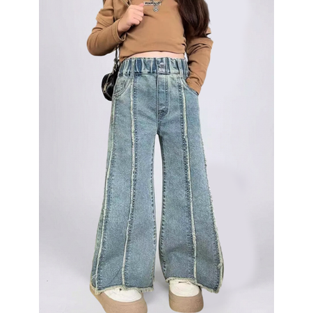 Джинсы iUkoworld - это стильное и удобное решение для юных модниц. Модель выполнена в трендовом стиле палаццо с широкими штанинами, которые создают свободный и комфортный силуэт. Джинсы на резинке клеш от бедра, что обеспечивает удобную посадку и легкость надевания. Модель выполнена из качественного материала на основе хлопка с добавлением полиэстера и спандекса, что придает джинсам мягкость, прочность и эластичность. Стильный синий цвет и оригинальные полоски из бахромы на штанинах делают эти джинсы настоящим хитом сезона. Джинсы iUkoworld - идеальный выбор для повседневной носки, прогулок в садике, а также для праздничных мероприятий.