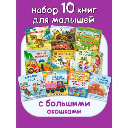 В набор книг для малышей входит 10 удивительных книжек с двойными окошками . На каждом развороте окошко с двойными створками, секретами для малышей. Окошки раскрываются в полноценную картинку и содержат множество полезной и интересной информации для маленьких почемучек. Страницы прочные, сделаны из плотного целлюлозного картона. Книги для малышей с окошками - это прекрасный выбор развивающей игрушки для детей от года. Эти тактильные книжки представляет собой набор историй, которые малыши могут изучать, перелистывая страницы и открывая удивительные окошки.