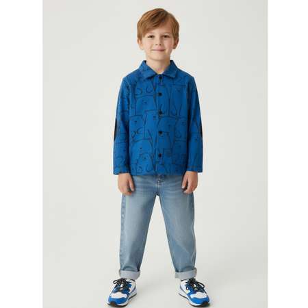 Рубашка с длинным рукавом для мальчика. Изготовлена из ткани футер 2-нитка с начесом 100% хлопок. На локтях декоративная "заплатка"-нашивка. Рубашка с застежкой кнопки. Рубашка для мальчика утепленная понравится вашему ребенку. Интересный принт понравится вашему ребенку.
