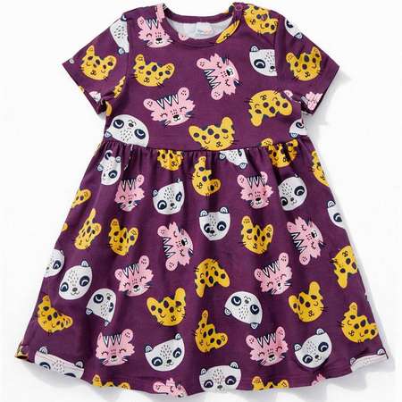 Платье с короткими рукавами для девочки с принтом. Изготовлено из ткани интерлок 100% хлопок. По плечу застежка кнопки. Платье подходит для детского садика, для дома и для прогулок.