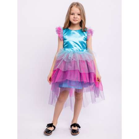 Платье Мелоди детское нарядное разноцветное. Пышная многослойная юбка со шлейфом. Блестящий атласный лиф. Короткие рукава с оборками. Завязка на спинке. Нарядное пышное платье подойдет для любого торжества.