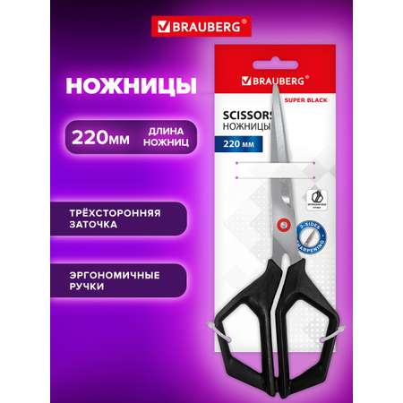 Ножницы BRAUBERG "Super black" 220 мм – идеальный выбор среди канцелярии для школы и офиса. Благодаря 3-х сторонней заточке они легко и точно режут бумагу, обеспечивая комфорт и эффективность при работе с канцтоварами. Ручки из прочного ABS пластика не только прочные, но и удобные, что делает эти ножницы канцелярские незаменимыми принадлежностями на рабочем столе. Их стильный черный дизайн гармонично впишется в эстетику канцелярии, подчеркивая профессионализм и аккуратность. Эти ножницы канцелярские отлично подойдут как для использования в школах, так и в офисе, сочетая удобство и надежность в одном инструменте.