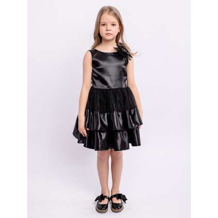 Нарядное платье с пышной юбкой, декоративным бантом на плече. На спинке имеется поясок чтобы дополнительно утянуть талию.