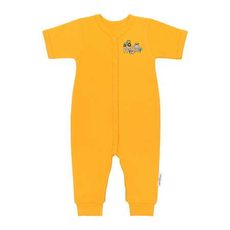 Комбинезон с открытыми ножками и коротким рукавом выполнен из высококачественного трикотажа и дарит абсолютный комфорт и мягкость, заботясь о нежной коже малыша.