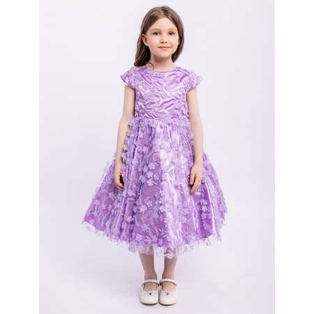 Нарядное сиреневое платье с пышной юбкой. Тонкая сетка с вышивкой. Подкладка 100% хлопок. Платье для девочки без рукавов украшено объемными мелкими цветами. Отличный вариант для подарка.