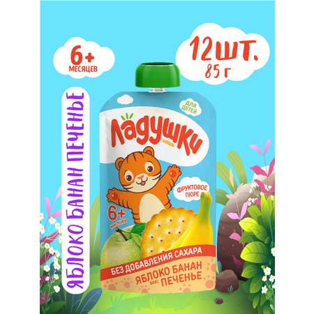 Цена на Пюре Ладушки Яблоко Банан Печенье с 6 мес 85 г 12 упак. - 663 ₽.