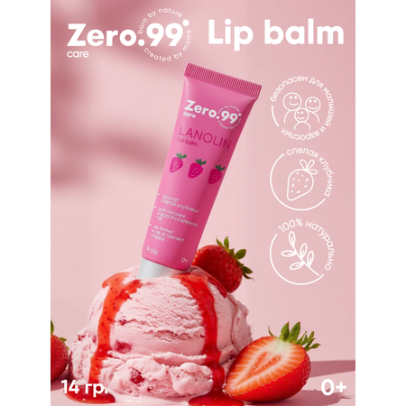 100% натуральный бальзам для губ Zero.99 с ароматом спелой клубники — эффективное средство для увлажнения и защиты губ от сухости и погодных воздействий. В составе — ланолин, известный своими смягчающими и заживляющими свойствами. Предназначен для глубокого восстановления сухой и потрескавшейся кожи губ. Бальзам интенсивно питает и защищает губы от потери влаги и заживляет трещинки. Подходит детям с рождения (0+) и взрослым.