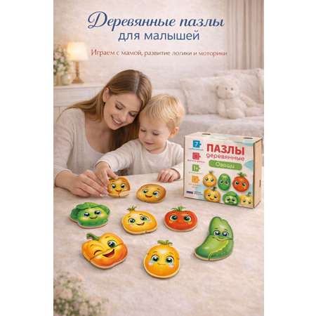 Почему наши пазлы станут любимыми? Экологичный материал — изготовлены из натурального дерева, безопасны для малышей. Развивают логику и мелкую моторику — ребёнок учится сопоставлять формы и собирать картинку. Учат различать овощи и цвета — каждый пазл — это маленький урок о мире вокруг. Долговечность — деревянные детали не ломаются, выдерживают многократное использование. Яркий дизайн — мультяшные овощи с эмоциями не оставят равнодушным ни одного ребёнка!