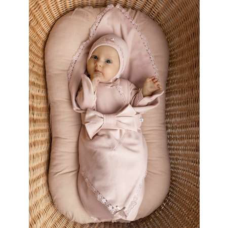 Размер: 95x95 см — идеально подходит для первых дней жизни и может служить мягким трикотажным пледом для повседневного использования, дополнен поясом с бантом.