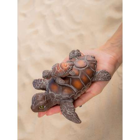 Детский игровой набор черепаха с малышом-черепашонком из коллекции "Magic Ocean"- это самая милая семья на свете. Невероятно реалистичные игрушки животные reborn уведут Вас в подводный мир и покажут, насколько увлекательным и красочным он может быть. Дизайнеры компании "Magic Manufactory" постарались передать анатомические особенности и природный окрас этих удивительных созданий, чтобы каждый малыш мог подержать в руках маленькую копию одного из самых древнейших обитателей нашей планеты. Развивая воображение, эти трогательные зверушки, с “живыми”, блестящими, акриловыми глазами, научат детей любви и заботе. Это отличный подарок как для мальчика, так и для девочки любого возраста, от малышей до подростков и, даже, взрослых. Материал, из которого изготовлена каждая мини фигурка — это высококачественный медицинский силикон на базе платины (произведенный в США), благодаря которому достигается невероятный реализм и эффект мягкой и нежной кожи.Тот же силикон используется в ортопедии и при создании спецэффектов в киноиндустрии. Не токсичен, обладает высокими техническими характеристиками, выдерживает нагрев до 200 градусов, не боится воды и холода, света и падений с высоты.Все пупсы окрашиваются мастерами вручную, поэтому каждый из них по-своему индивидуален и неповторим. Ребенок может собрать свою уникальную коллекцию чудесных питомцев.Силиконовые звери реборн подходят для в ванной, а для достижения эффекта бархатистой кожи, после купания игрушку необходимо обработать присыпкой для младенцев.Небольшие размеры (15 см и 5 см) делают куклу мобильной и простой в транспортировке. ВНИМАНИЕ! Материал эластичен, но не предназначен для растягивания. При многократном сильном растяжении тонких мест (пальцы, глубокие складки), может давать трещины или рваться.