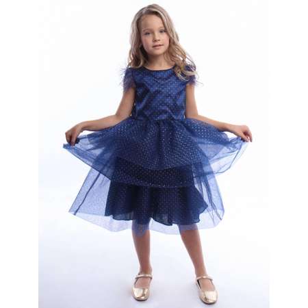 Нарядное пышное платье синего цвета с перьями на рукавах. Удобное и невероятно красивое платье для утренников и фотосессий. Трехслойная пышная юбка из фатина длиной до колена. Платье выполнено в минималистичном стиле и при этом смотрится празднично. Станет прекрасным дополнением детского праздничного гардероба. На любой вечеринке ваша модница будет в центре внимания.