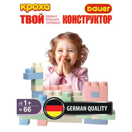 Конструктор детский для малышей, мальчиков и девочек Bauer серии Кроха, это увлекательная и развивающая игрушка от 1 года. Новые строительные блоки имеют большой размер и крупный шип для легкого, но прочного соединения деталей, что делает конструктор идеальным для маленьких детских ручек. Новая палитра нежных цветов - голубой, светло зеленый, розовый и пастельно серый внесут гармонию в игре с кубиками. Вместе с Bauer Кроха, Ваш малыш легко освоит такой простой, но такой важный навык – соединение деталей и создание простых объемных фигур. Новый конструктор Кроха поможет ребенку развивать мелкую моторику, координацию движений, пространственное мышление, и не только. Уже в 9–12 месяцев ребёнок видит все цвета на любом расстоянии, различает их, и может отдавать предпочтения какому-либо оттенку. Играя с конструктором серии, Кроха, Вы сможете рассказать ребенку названия цветов, научить его выбирать делали одного цвета, и строить из них фигуры. Основные характеристики конструктора серии Кроха. Крупные блоки самый маленький, единичка 3х3 см, с которыми легко справится Ваш малыш. Новые не агрессивные цвета, привлекут внимание ребенка и могут дополнить уже имеющиеся наборы в стандартных цветах. Безопасность материалов, блоки сделаны из экологически чистых и безопасных материалов, Российского пищевого пластика и окрашены пищевыми красителями. Возможность создания различных фигур и сооружений, примеры построек есть в карточке товара и в буклете, входящем в набор. Коробка набора выполнена из эко-картона. В данном наборе 66 строительных блоков разных цветов с 1, 2 и 3 шипами. Вместе с родителями, наша компания смотрит в будущее на несколько лет вперед. Наборы серии Кроха будут служить Вашему ребенку на протяжении нескольких лет, ведь новые крупные блоки совместимы со всеми наборами конструктора Bauer и серией Конструктор №1 блоки с высокой детализацией. Наш конструктор растет вместе с Вашим ребенком. Добро пожаловать во Вселенную Bauer.
