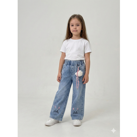 Джинсы для девочки, с завышенной талией. Джинсы выполнены из качественного плотного эластичного денима. Спереди имитация ширинки. Модель дополнена шлевками для ремня, двумя карманами спереди и двумя карманами сзади. Джинсы отлично подойдут для повседневной носки. Перед ноской, рекомендуем предварительную стирку.
