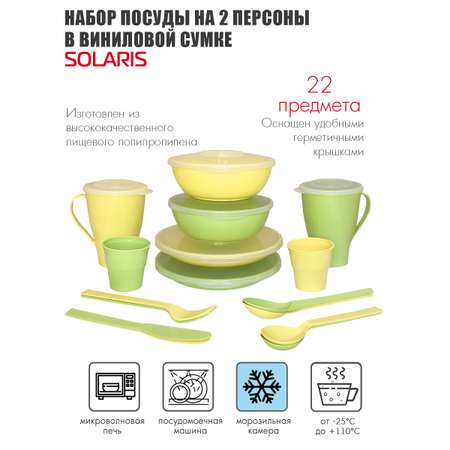 Цена на Набор посуды Solaris на 2 персоны желто-зеленая пастель - 3360 ₽.