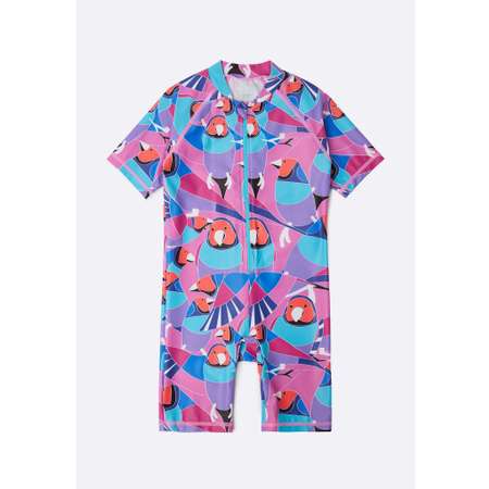 Комбинезон для купания, в котором малышу будет комфортно знакомиться с водой в первые месяцы жизни. Модель заинтересует малыша ярким рисунком птиц, и поможет отвлечься, если он еще боится воды. А если на занятиях в бассейне будет много детей, родители не потеряют своего ребенка из вида и смогут держать с ним визуальный контакт. Комбинезон выполнен из солнцезащитного переработанного трикотажа. Если забудете нанести на кожу малыша SPF — не беда. Фактор защиты ткани от ультрафиолета 50+, поэтому комбинезон не пропустит активные лучи солнца. А еще ткань быстро сохнет — у малыша не появится раздражение, и он не будет плакать от дискомфорта. Чтобы ребенку было удобно, продумана каждая деталь: В составе ткани 17% эластана, поэтому комбинезон тянется и не сковывает движения Все швы плоские, так что комбинезон не будет натирать нежную кожу малыша Рукава до локтей и штанины до колен. Малыш будет чувствовать воду кожей и постепенно знакомиться с ней. Надевать комбинезон на малыша получится легко и быстро — есть молния посередине Полуавтоматическая застежка на молнии не расстегнется случайно и не поцарапает кожу.