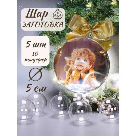Шары прозрачные пластиковые CMGS заготовки для елочных игрушек, декорирования и декупажа набор 5 шт 5 см