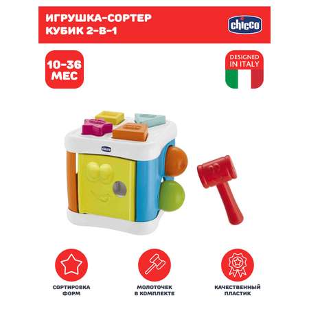 Развивающая игрушка-сортер Chicco «Кубик 2-в-1» из серии Smart2Play — отличный выбор для малышей от 1 года до 3 лет. Она помогает ребёнку в игровой форме развивать когнитивные способности, внимание, логику и координацию движений.