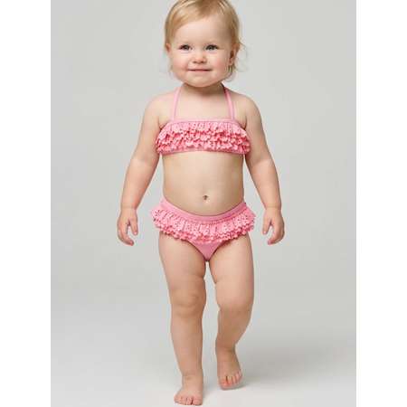 Детский купальник для девочки. Модель выполнена в нежно-розовом цвете и украшена объемными цветочными рюшами, которые создают яркий и праздничный образ. Топ на регулируемых бретелях. Плавки на подкладке средней посадки, также декорированы рюшами по талии. Все края обработаны эластичной тесьмой, чтобы изделие хорошо сидело на теле и не натирало. Благодаря UF-защите, ткань сохраняет первоначальный вид даже при длительном пребывании на солнце. Идеально подходит для пляжа и отдыха летом.