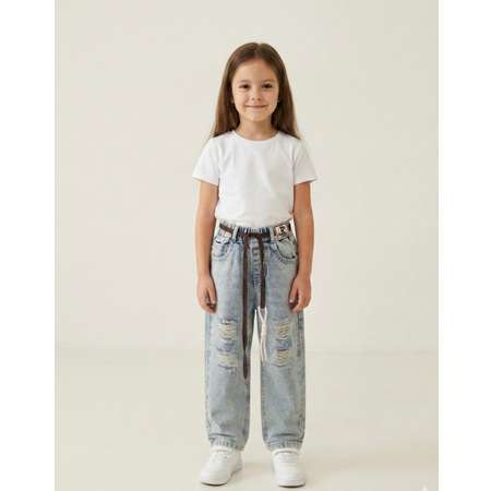Джинсы для девочки, с завышенной талией. Джинсы выполнены из качественного плотного эластичного денима. Спереди имитация ширинки. Модель дополнена шлевками для ремня, двумя карманами спереди и двумя карманами сзади. Джинсы отлично подойдут для повседневной носки. Перед ноской, рекомендуем предварительную стирку.