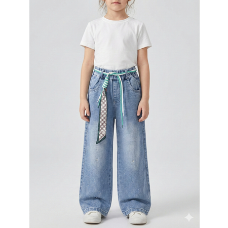 Джинсы для девочки, с завышенной талией. Джинсы выполнены из качественного плотного эластичного денима. Спереди имитация ширинки. Модель дополнена шлевками для ремня, двумя карманами спереди и двумя карманами сзади. Джинсы отлично подойдут для повседневной носки. Перед ноской, рекомендуем предварительную стирку.