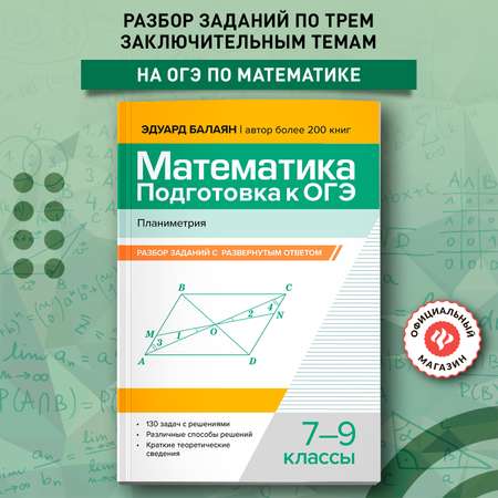 Цена на Математика. ОГЭ Планиметрия Феникс Книга - 399 ₽.