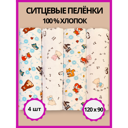 Пелёнка Делоникс Еноты + Нотки ситец 90х120 см 4 шт.