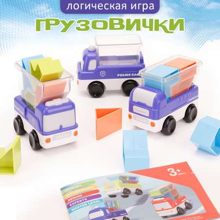 Увлекательная игра-головоломка "Грузовички" понравится всем: малыши смогут просто играть с машинками, складывая и выкладывая разноцветные детали, а дети постарше научатся выполнять задания, компактно заполняя кузова грузовиков фигурками. И очень может быть, что, выполняя увлекательные задания по карточкам, ваш малыш даже не догадается, что не просто играл, а решал сложные логические задачи. В комплекте: буклет с карточками схемами, как грузить автомобиль, фигуры разной геометрической формы 12 штук, 3 симпатичных грузовичка. В карточке-схеме 13 заданий различного уровня сложности от начинающего до мастера. Над заданиями уровня Мастер интересно поломать голову даже деткам постарше. Обучайтесь в процессе игры легко и просто.