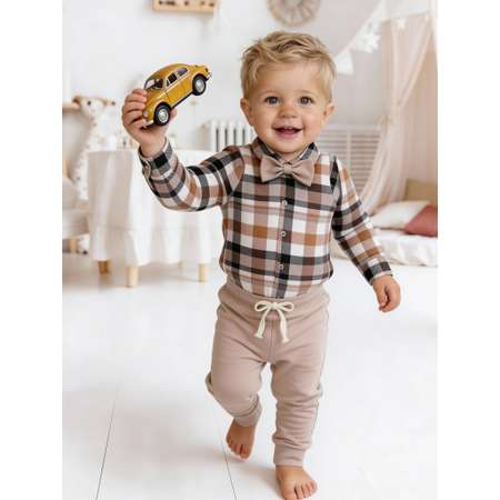 Праздничный костюм для малыша — отличный выбор для первого дня рождения, крестин или фотосессии. Нарядный комплект с бабочкой создан специально для мальчика, чтобы подчеркнуть его индивидуальность и сделать детский образ стильным и элегантным. Брючный классический набор включает удобные штаны со шнурком, свободного кроя не сковывают движений, мягкую рубашку-боди на кнопках по всей длине, что облегчает переодевание новорожденных грудничков и съемную бабочку на резинке для удобства. Благодаря универсальному дизайну этот костюмчик гармонично впишется в гардероб маленьких джентльменов и подойдет для утренника, выпускного, вечеринки, праздника или даже для фотосессии на память. Боди в клетку и однотонные штанишки в бежевом цвете делают комплект гармоничным и универсальным для мальчишек разных возрастов. Боди выполнено из приятного хлопкового трикотажного материала, который не раздражает кожу младенца и деток по старше. Красивый наряд украшен стильной съемной бабочкой, что придает ему модный, классический стиль. Вещи из базовой коллекции подойдут для малышей от 6 месяцев жизни и станут отличным подарком на день рождение - первый годик, и до 2х лет. Наряд можно выбрать для сада, домашнего использования, фотосессии или как подарок на рождение или крестины.