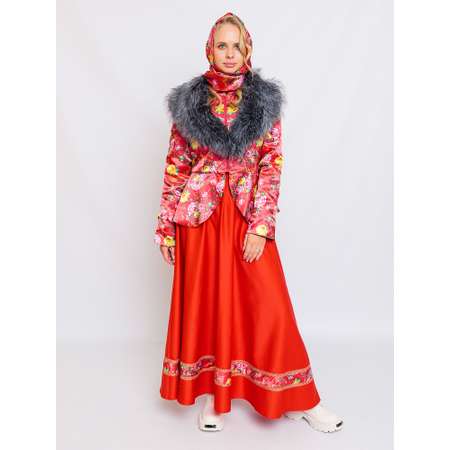 Карнавальный костюм Матрена женский для взрослых. Яркий костюм в русском народном стиле к Масленице и другим праздникам. В комплект входит душегрея на молнии, длинная красная юбка на резинке, платок на голову в тон душегрее, съемный меховой воротник серого цвета. Размеры 44 и 52 на рост 164. Костюм прекрасно подойдет для выступлений, фотосессий и спектаклей.