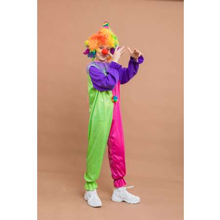 Карнавальный костюм Клоун — яркий и веселый образ для праздников, утренников и представлений! Костюм подарит море улыбок и отличное настроение. В комплект входит: комбинезон, колпак на резинке, парик и нос на резинке. Легкий и удобный, он позволит ребенку свободно двигаться и веселиться весь праздник.
