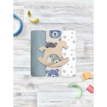 Пелёнка Mjolk Bears/Blue Shadow/Звёзды трикотаж 85х120 см 3 шт.