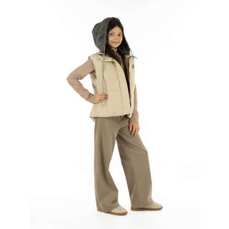 На Мирославе жилет 140 размера, ее рост 145 см. Утепленный стеганный жилет изготовлен из влагостойкой, непродуваемой ткани. Утеплитель 100 гр. Базовый жилет для девочки - это идеальный верхний слой для прохладного лета и весенней погоды. Комфортная температура эксплуатации от +5 С до +20 С (зависит от индивидуальных особенностей ребенка и качества и количества слоев нижней одежды).