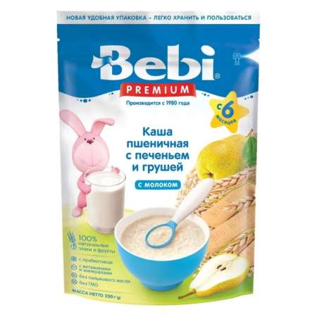 Молочная каша Bebi Premium Пшеничная с печеньем и грушей