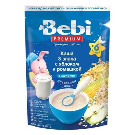 Молочная каша Bebi Premium 3 злака с яблоком и ромашкой