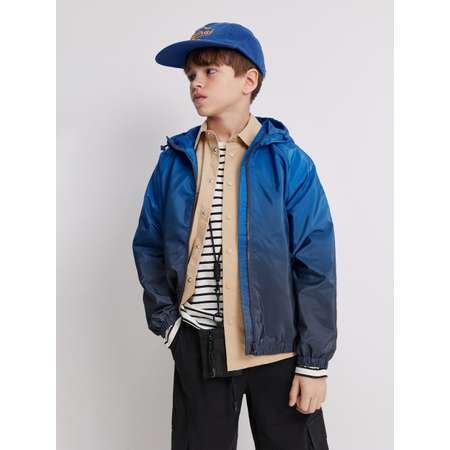 Легкая куртка для мальчиков изготовлена из курточной принтованной ткани с водоотталкивающей пропиткой, которой не страшны мелкий дождь и ветер. Модель без утеплителя будет комфортна в ношении при температуре от +5 до +20 градусов. Подкладка изделия выполнена из стандартной подкладочной ткани. Рукава покроя реглан подходят на разную ширину плеч, а манжеты на резинке обеспечивают комфортное прилегание к телу, исключая продувание. Спереди расположена застежка-молния с защитой подбородка от защемления и внутренней ветрозащитной планкой. Карманы на молнии добавляют куртке практичности и надежно сохраняют содержимое. Несъемный капюшон с кулиской фиксируется на эластичный шнур со стопперами, чтобы защищать от ветра и непогоды. Синяя ветровка с градиентным принтом придаст образу интересный штрих и займет прочное место в гардеробе ребенка.